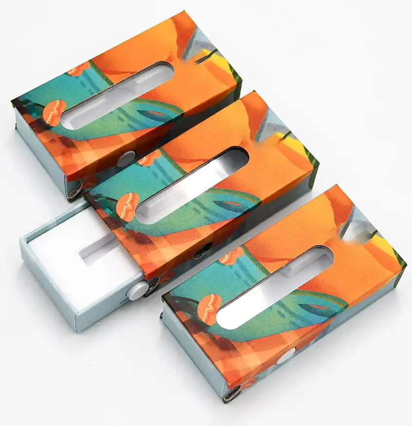 A common structure from Zhibang’s range is rigid lid-and-base or drawer boxes with an insert tray for concentrates, as you see in custom cannabis packaging boxes.